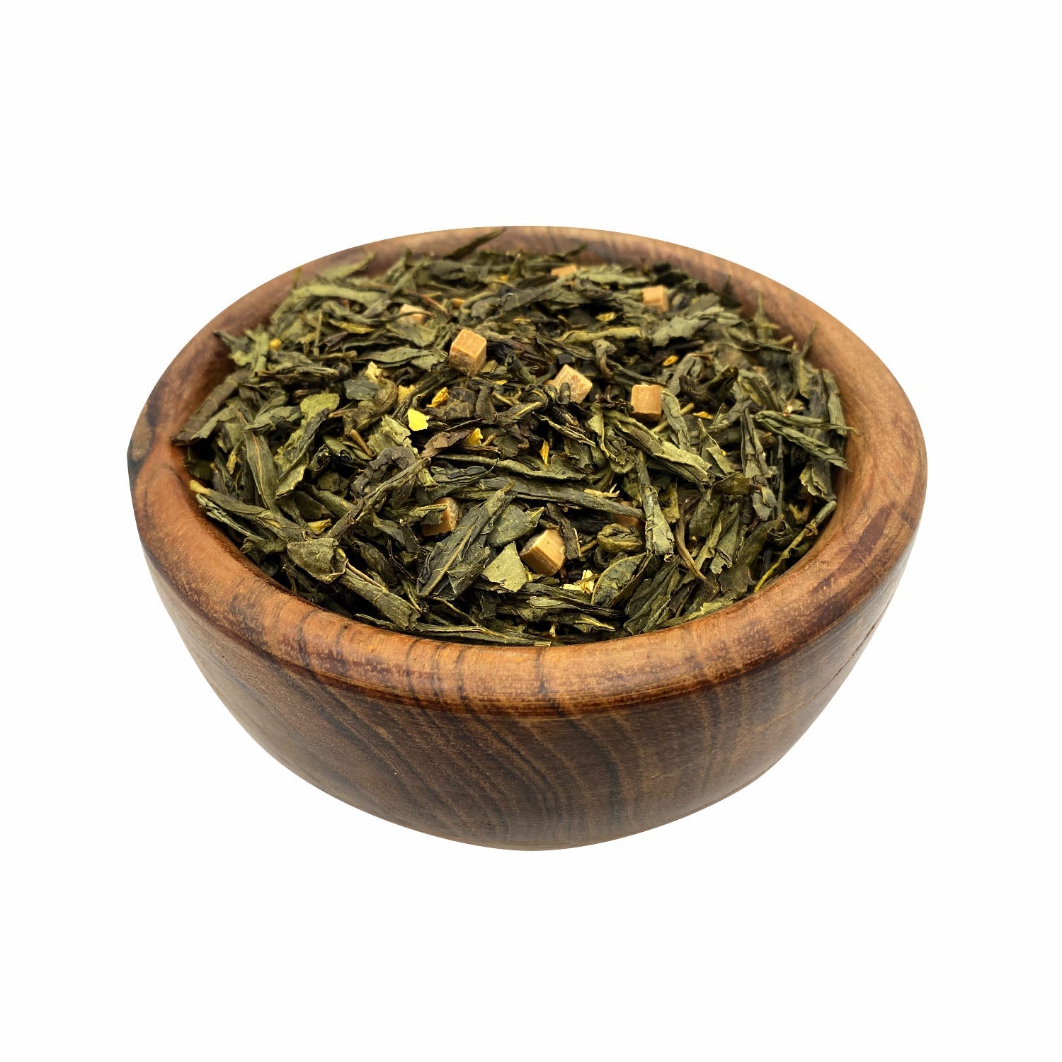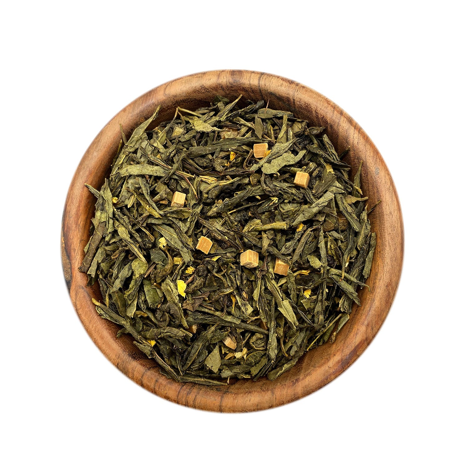 Pižmová karamelová zmes s listami zeleného čaju a okvetnými lístkami slnečnice.